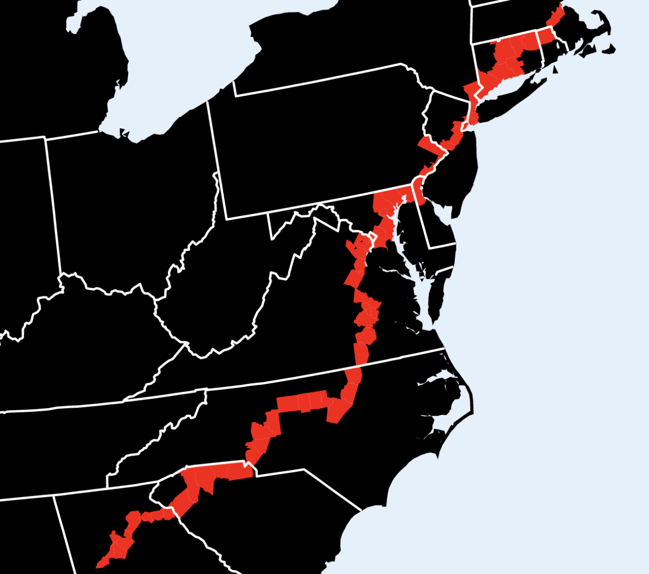 US demography is so nuts. This strip of land from Atlanta to Boston (passing through Greenville, Charlotte, Raleigh, Richmond,...