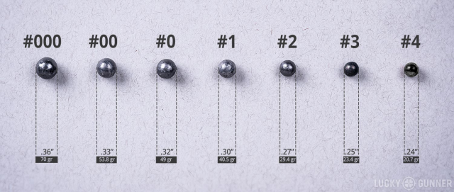 Buckshot and birdshot use different scales, while using many of the same designations. So #4 buck is 0.24″ diameter, while #4 bird is 0.13″.