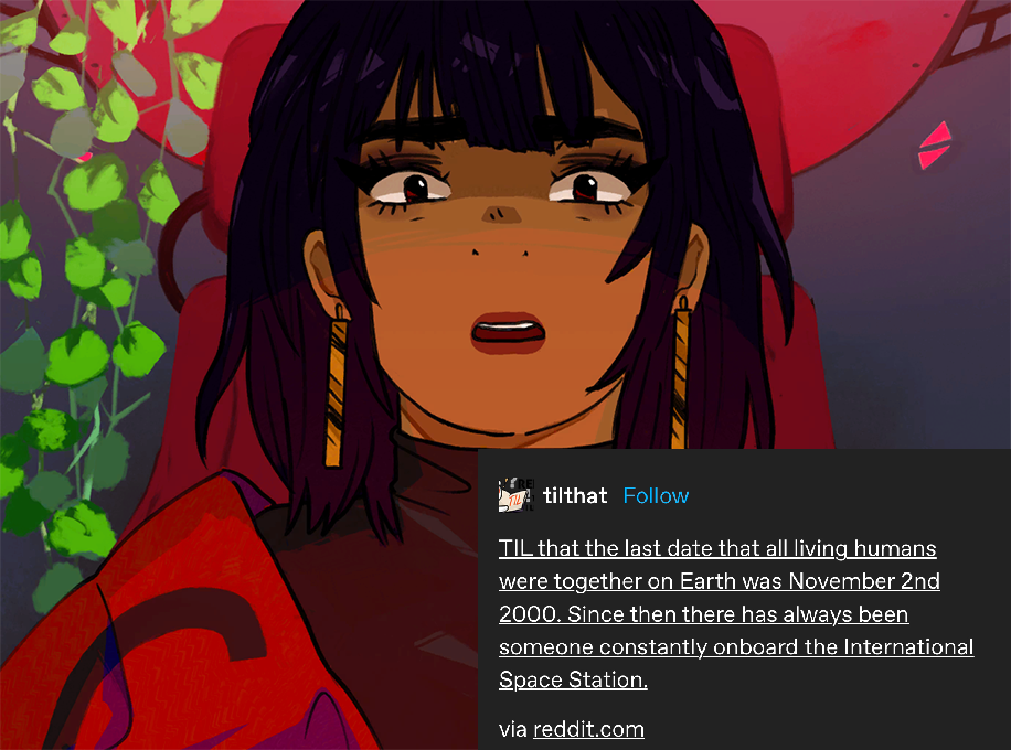 a picture of pluto from hwbm, a woman with brown skin and black hair. text post from tilthat reads: TIL that the last date that all living humans were together on earth was november 2, 2000.