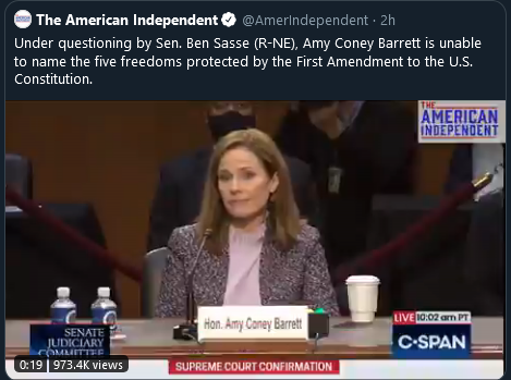 I will say if she remembered speech, press, religion, and assembly but forgot “petition for redress of grievances” then this is a nonissue, because that one is like confusingly worded and everyone forgets that one; and you could argue, based on the wording, that it’s not a fifth separate right from the right to assembly, but is just part of the right to assembly.