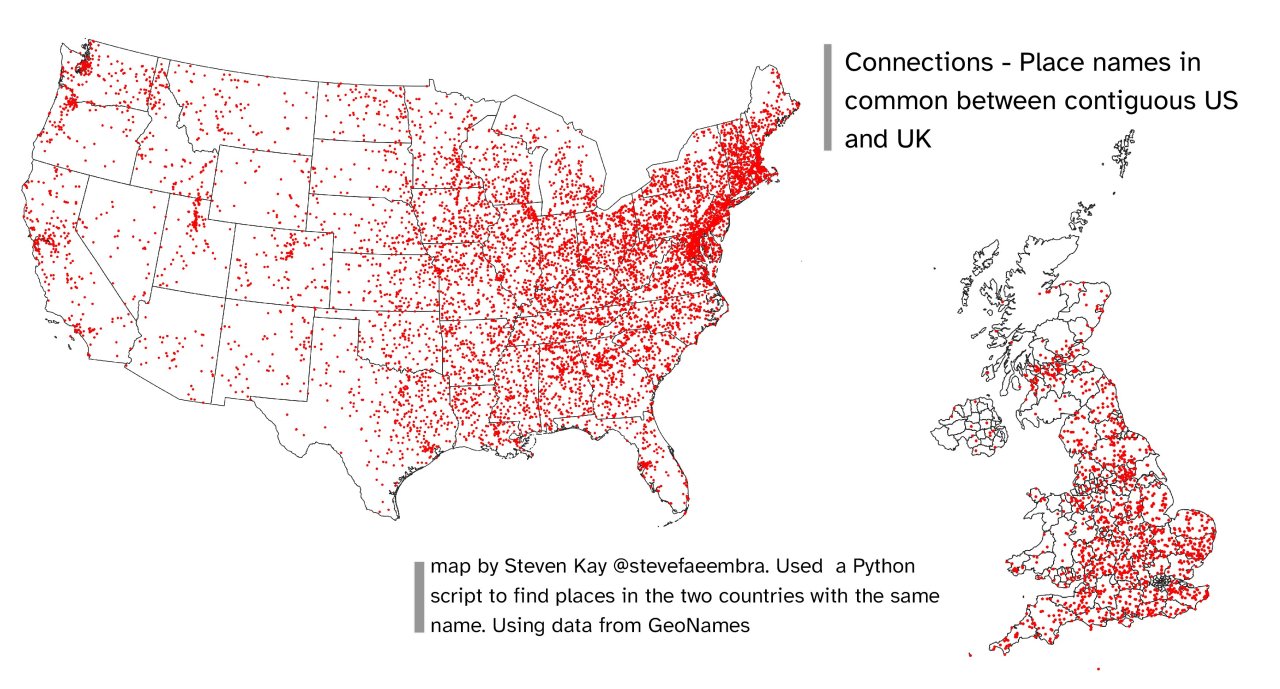Place names in common between contiguous US and UK.by @stevefaeembra