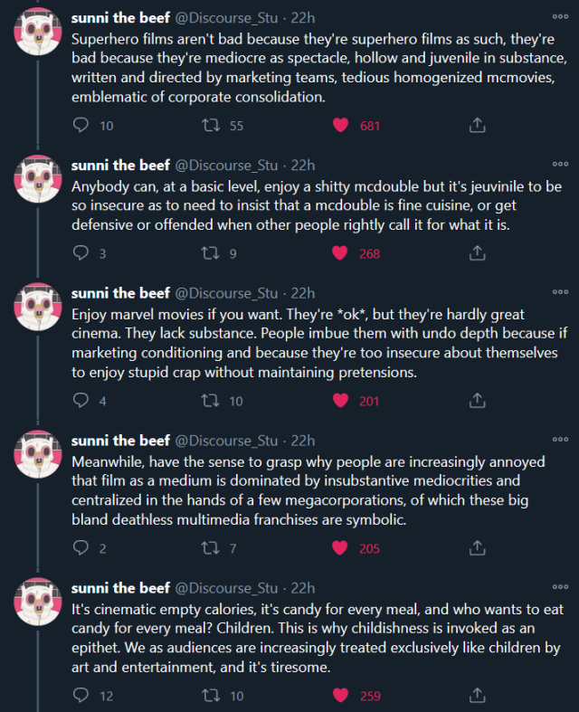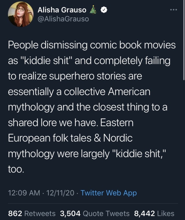 the promise was that superheroes were our new pagan gods but back in the day you’d write new legend to incorporate a crisis or triumph that already actually happened to your culture, I think there’s some cart-horse mixup going on here