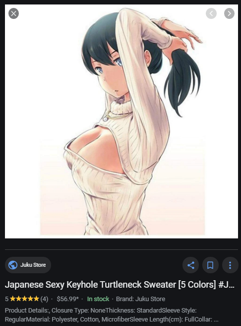 Kind of impressed that Japan is fetishizing turtleneck sweaters, the keyhole and the virgin-killer