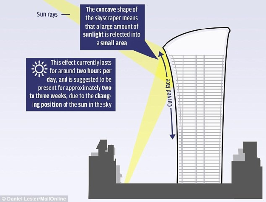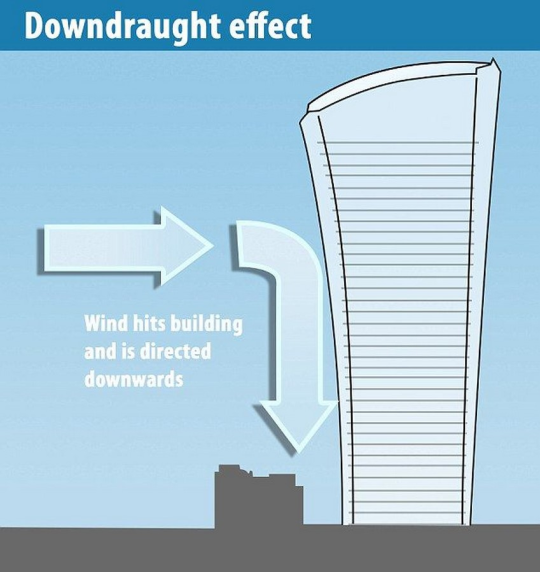 just learned about a building in london that is so poorly designed it becomes a death ray that melts cars and creates a downdraft effect with wind so powerful that it knocks full grown adults to the ground