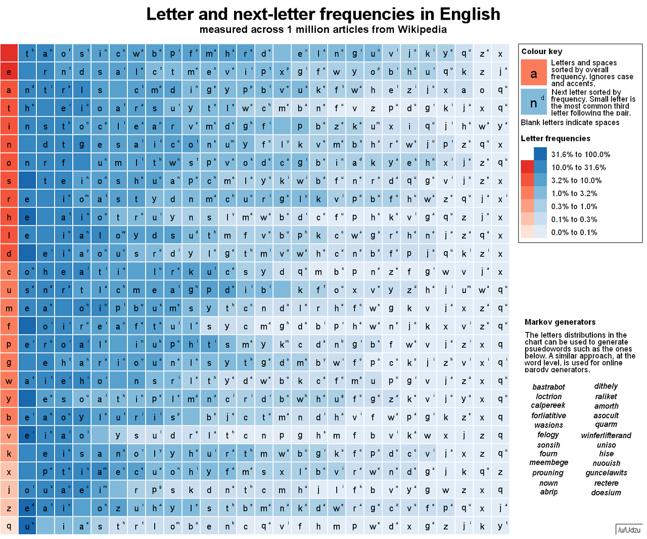 Letter and next-letter frequencies in English by Udzu