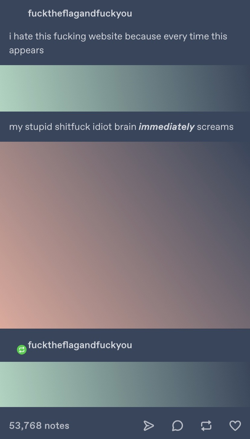 i hate this fucking website because every time this appears my stupid shitfuck idiot brain immediately screams