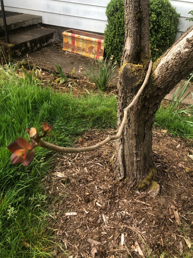 Alas, that’s four years down the drain. Might train a shoot coming higher off that right branch to curl around it 2 or 3 times then go off. At least learned this time to not trim it up every year, if it’s not in the way leave the leaf gore on for a bit to grow the main shaft thicker.