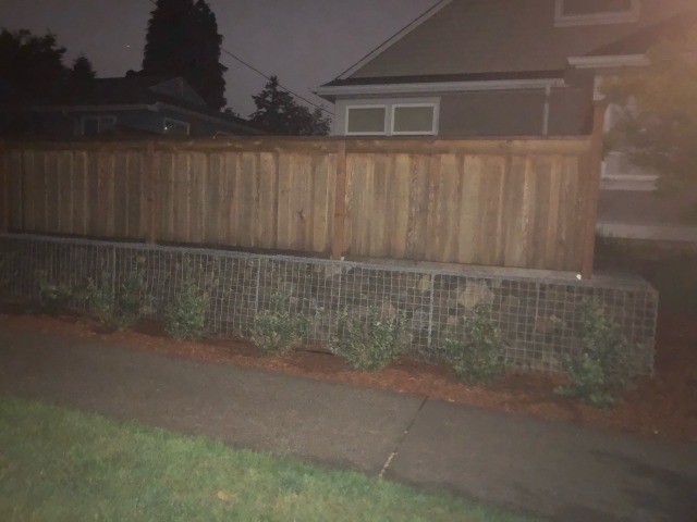 This is that house that shamed me when I was thinking about a Japanese “Shiro” castle rock base-inspired retaining wall, showing what an actual modern military fortification base would look like, loose rock in wire cages
