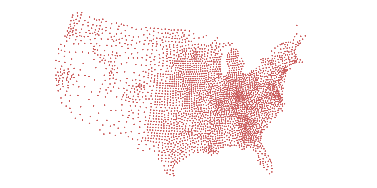 Each dot represents a county in the (contiguous) United States.