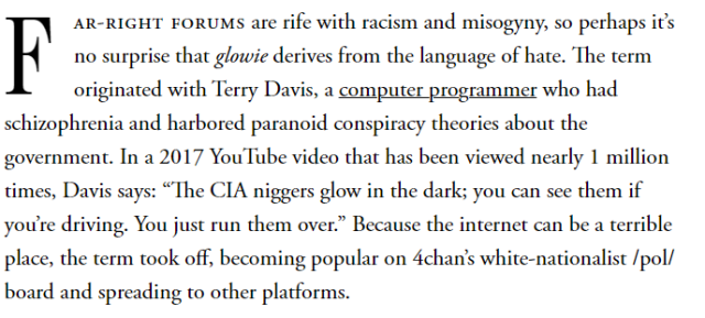 What the fuck is a “Glowie”? Hold on, lemme google that…