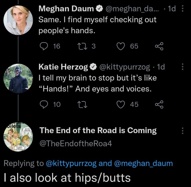 Oh, I’ve been checking out women’s chests when I meet them to appreciate their secondary sex characteristics all along