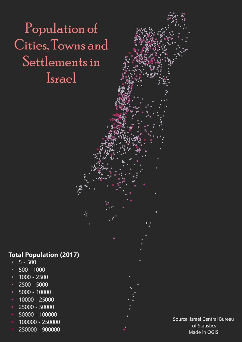 Population of Cities, Towns and Settlements in Israel. by @est987
