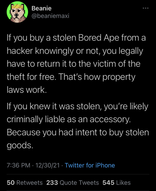 Oh, so all NFTs and cryptocurrencies on the blockchain are ultimately reliant on a government subsidizing you by enforcing your claims to property rights? What a revolutionary technology
