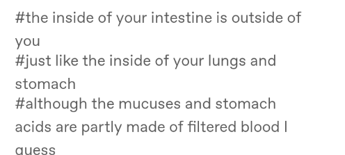 “Wait a minute,” you say a couple of generations later, because you’re not actually a small animal but an evolutionary process personified and simplified to the point of dangerous inaccuracy for the purposes of a Tumblr post, “instead of losing all these important chemicals to the water around me, how about I put it in tubes? I can keep MY water separate from the rest of the world’s water! Anything I want to keep goes in my water! Anything I don’t, I dump back into the outside water! I’m a genius! An unthinking natural trial-and-error process that’s a GENIUS!”