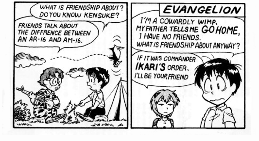 Official Charlie Brown x Evangelion parody strips distributed by Gainax with the release of Neon Genesis Evangelion on VHS.