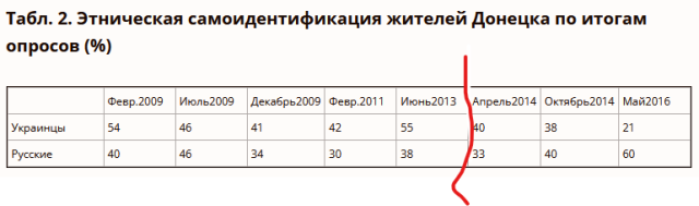 The proportion of Donetsk residents self-identifying as Ukrainians was, if anything, rising in the years leading up to Russia’s hybrid invasion. It drops afterward, but that’s t least as likely to be… not “social desirability bias” so much as “not-getting-disappeared bias”… as it is anger with the government in Kyiv.