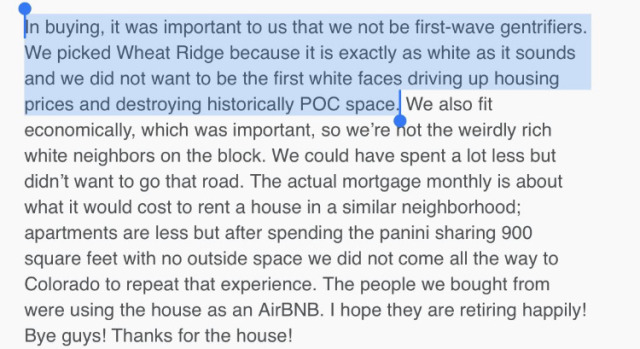 When choosing a home to buy it’s important that you stay in an all-white neighborhood, and not an ethnically-mixed one. This is for anti-racist purposes.