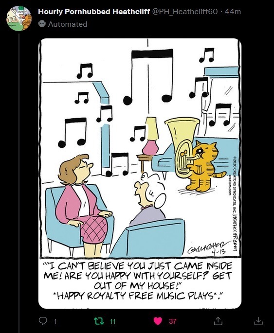 there's a twitter that automatically puts pornhub comments under heathcliff comics and this one ruined me