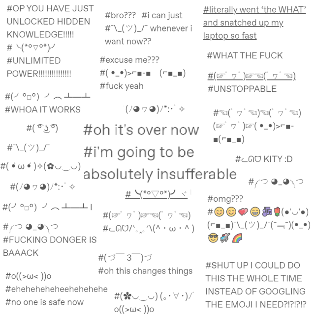 The key shortcut of "windows key" and "." held together has changed my life like emoji access? supremely powerful 🙂💖 But Kaomoji...