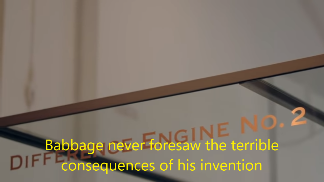[IMAGE DESCRIPTION: Two close-up photos of a difference engine, captioned with the text, “Babbage never foresaw the terrible...