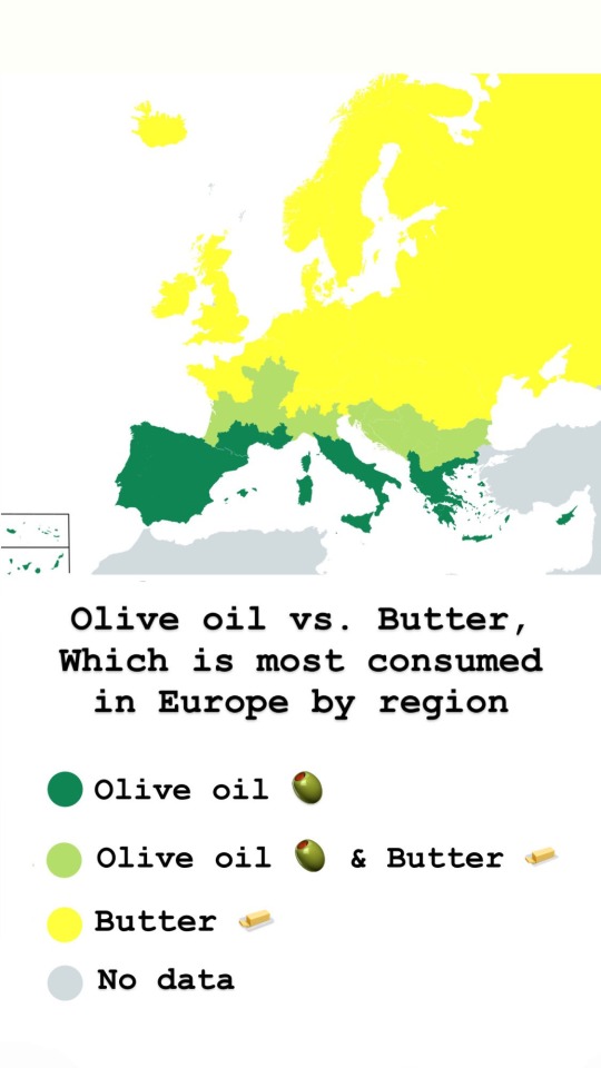Olive oil 🫒 vs. Butter 🧈, Which is most consumed in Europe by region: Source: Landgeist 2018, Euromonitor 2017-2021