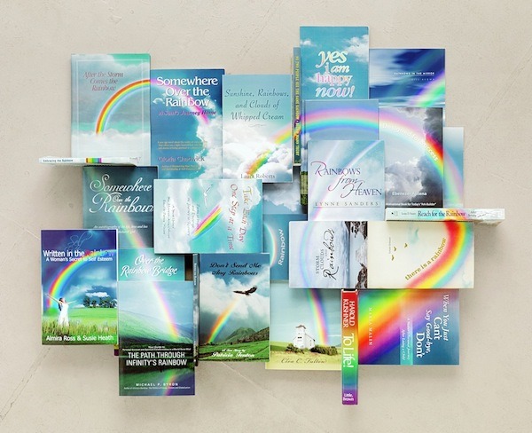 Collages made out of self-help books.