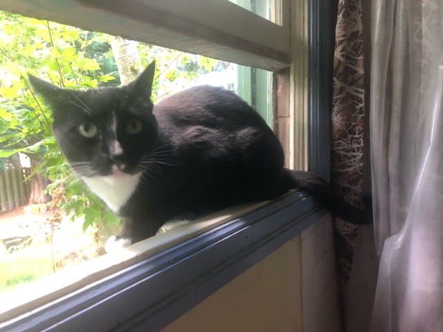 Badger has realized he can jump up to the bathroom window when I’m on the john