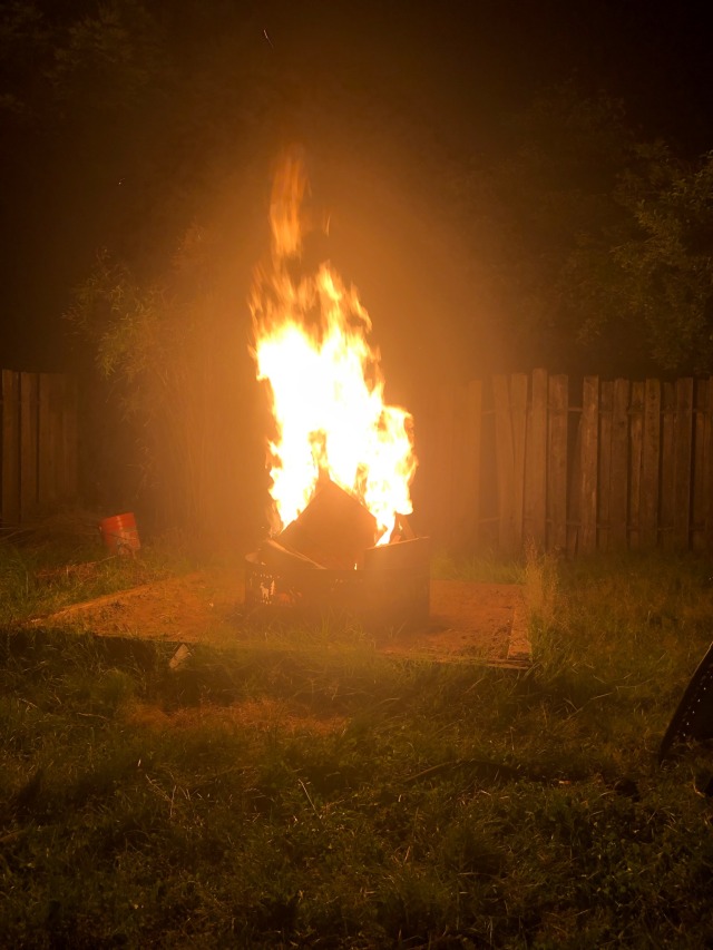 Burned all the scrap wood with metal in it I couldn’t extract; I’ll rake it from the ashes. First bonfire for the backyard.