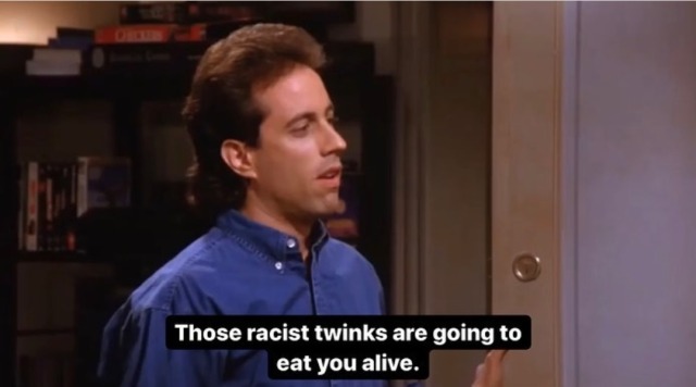 This one is the one that lives in my head rent free. “Those racist twinks are going to eat you alive” runs around my brain at all times