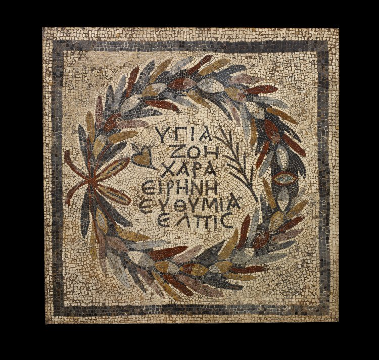 ‘health, life, joy, peace, good cheer, hope’. Mosaic, 4th century, Roman Anatolia. British Museum.