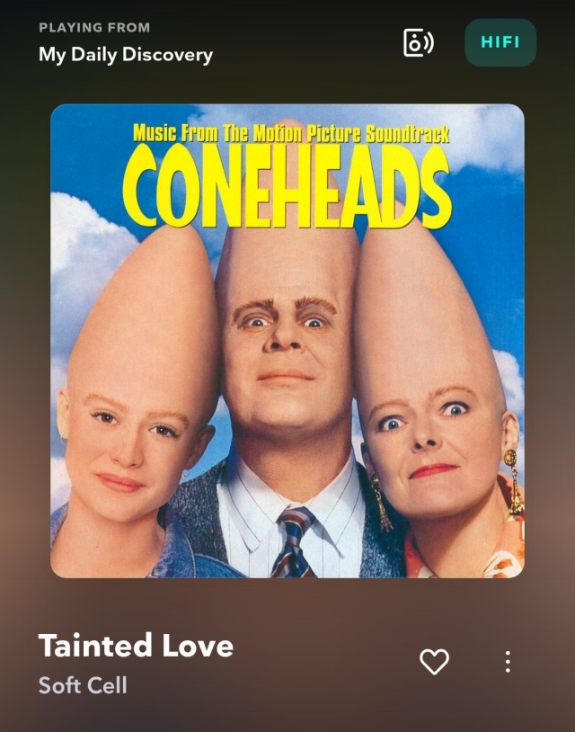 i like it when tidal uses random versions of songs from film soundtracks instead of the proper track from the proper album. yeah sure ill listen to tainted love from the coneheads soundtrack. why the fuck not