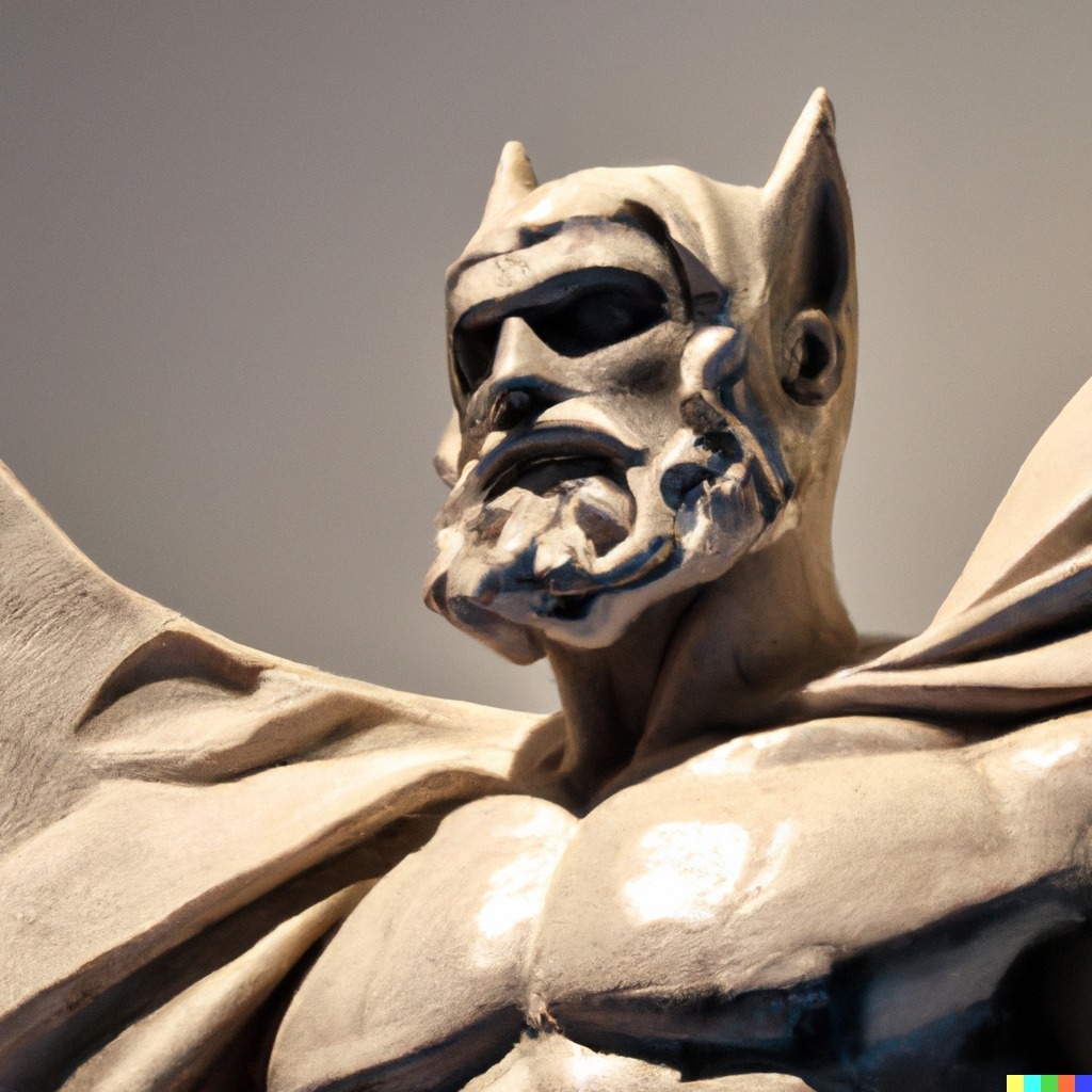 “An ancient greek statue of batman, sculpted out of marble” Created by DALLE, AI that can create realistic artwork from a...