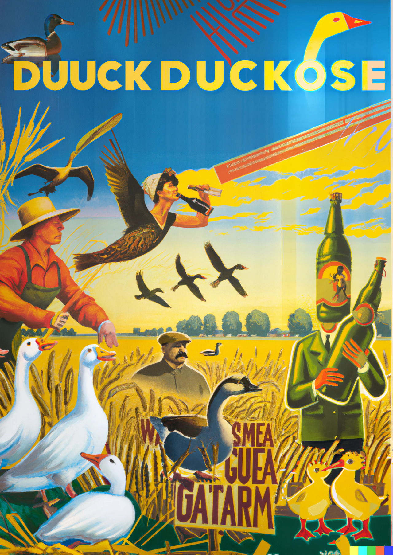 “Soviet realist poster advertising a drink that turns you into a duck - inspired by u/AWR_Crawford”