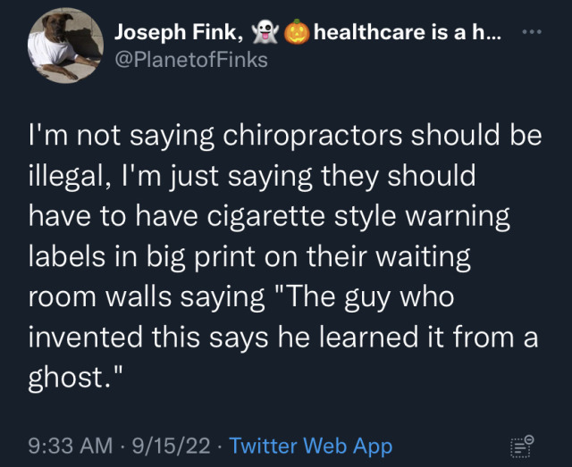 If you’re chiropractor is just some doctor, that’s great. You’re very lucky.