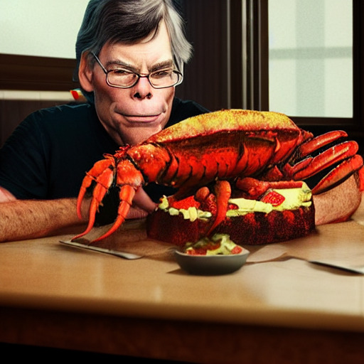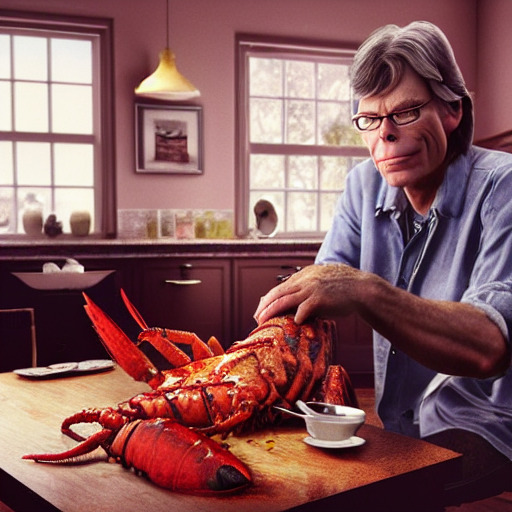 “Stephen King in his kitchen eating a lobstrosity.” Generated by Stability AI’s #StableDiffusion Give us a follow on...