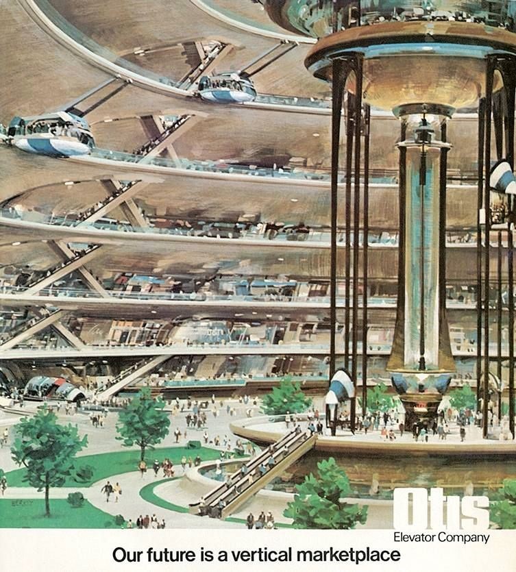 Otis Elevator Company “Our Future Is…” advertising campaign, 1975. Artwork by John Berkey.