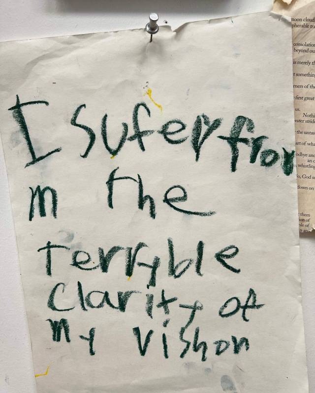 This note was written by a child who was listening in on a bunch of artists discussing art and life.