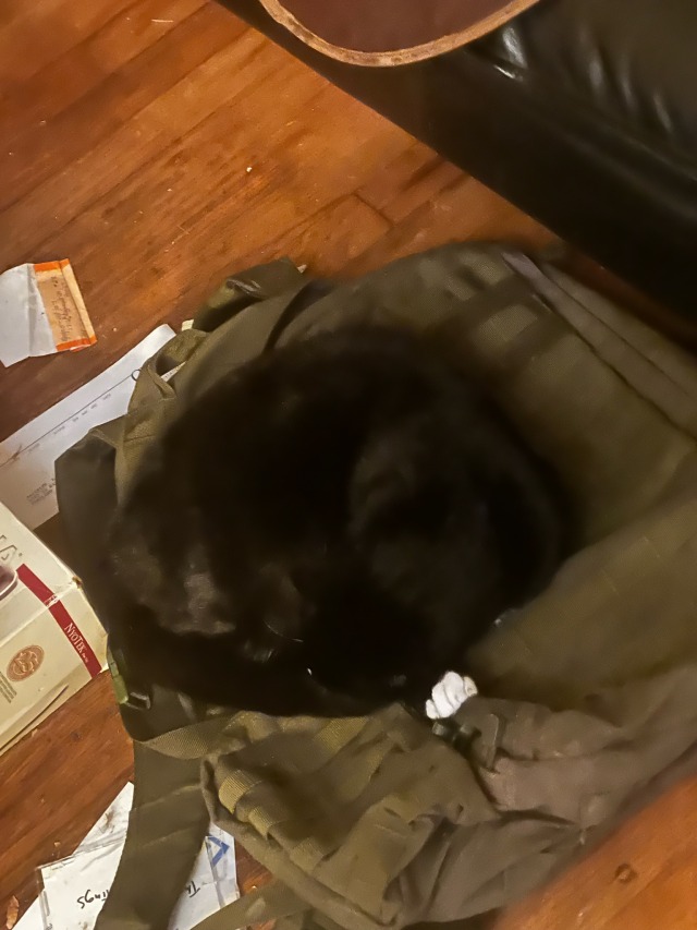 After several were proffered, the cat bed Badger will accept is, of course, a backpack