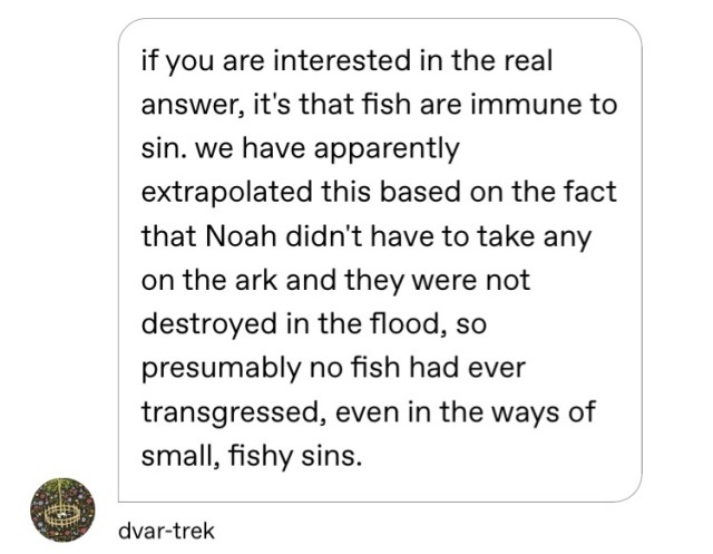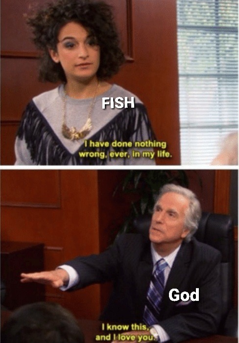 do fish ever get to repent? or are they doomed to swim around forever bearing the sins we have tossed to them to consume over...