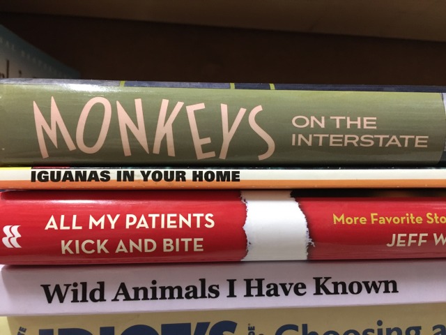 Was looking for a book today when I saw these various animal books all on the same shelf and noticed their titles made a nice little impromptu poem about veterinary medicine