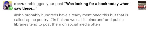 Nobody has mentioned this but I am so glad you did! I’ve never heard of spine poetry and I love the concept. I found these titles at a used bookstore that stacks books pretty freely so I will most definitely be scanning the spines for poetry every time I go