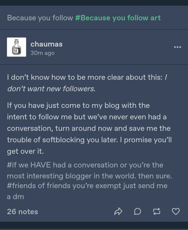 Tumblr is mocking your desire for peace by putting your post into the limited algorithm it has