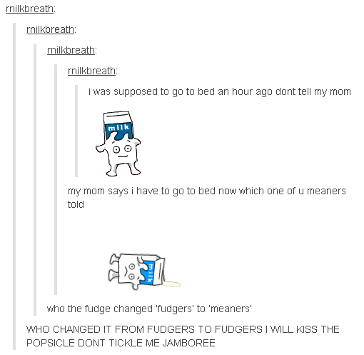 People are always talking about making John Green say “I love cocks” when it comes to having fun with tumblr’s ability to edit everyone’s posts but that one post where that person was saying fuckers and it got repeatedly edited to fudgers and meaners was 10000% funnier