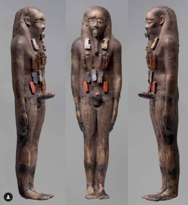 Statuette of Osiris as a Mummy with Erected Phallus, with amulets (3 views)
