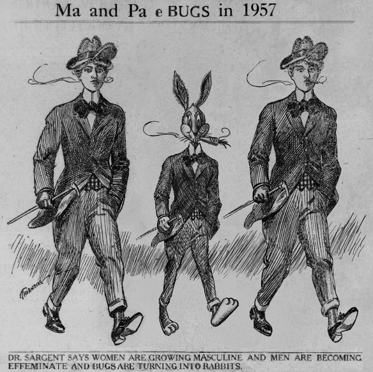 yesterdaysprint:Dr. Sargent says women are growing masculine and men are becoming effeminate.