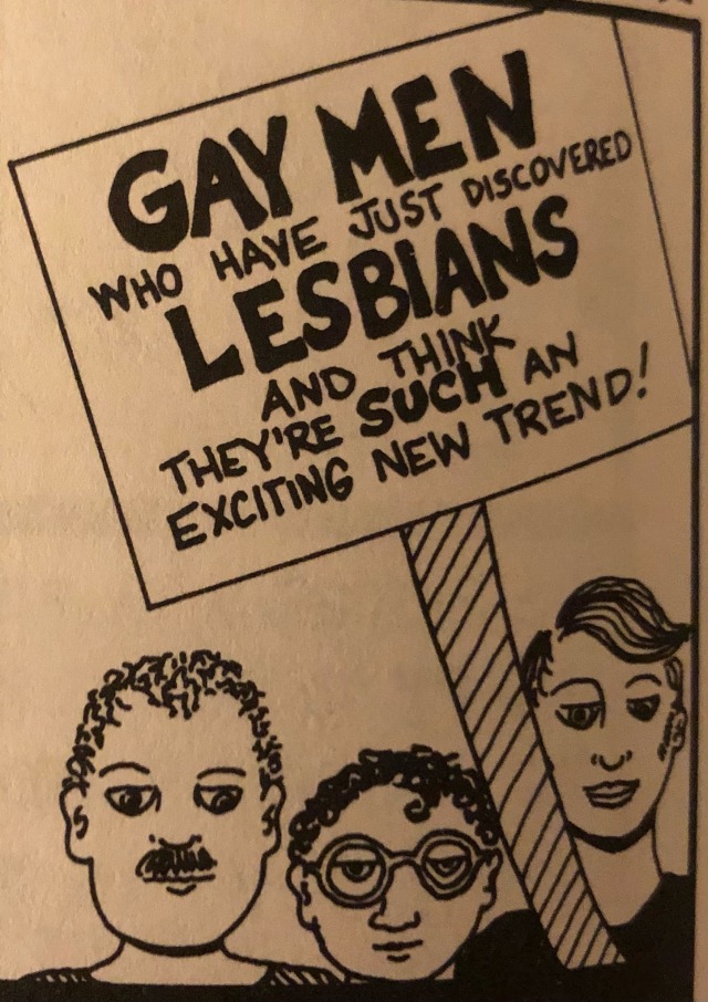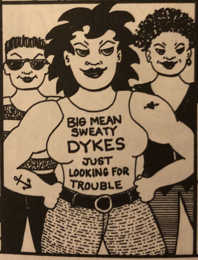 Source: Dyke Strippers; Lesbian Cartoonists A to Z , edited by Roz Warren