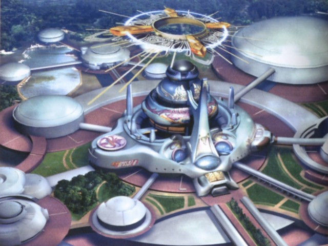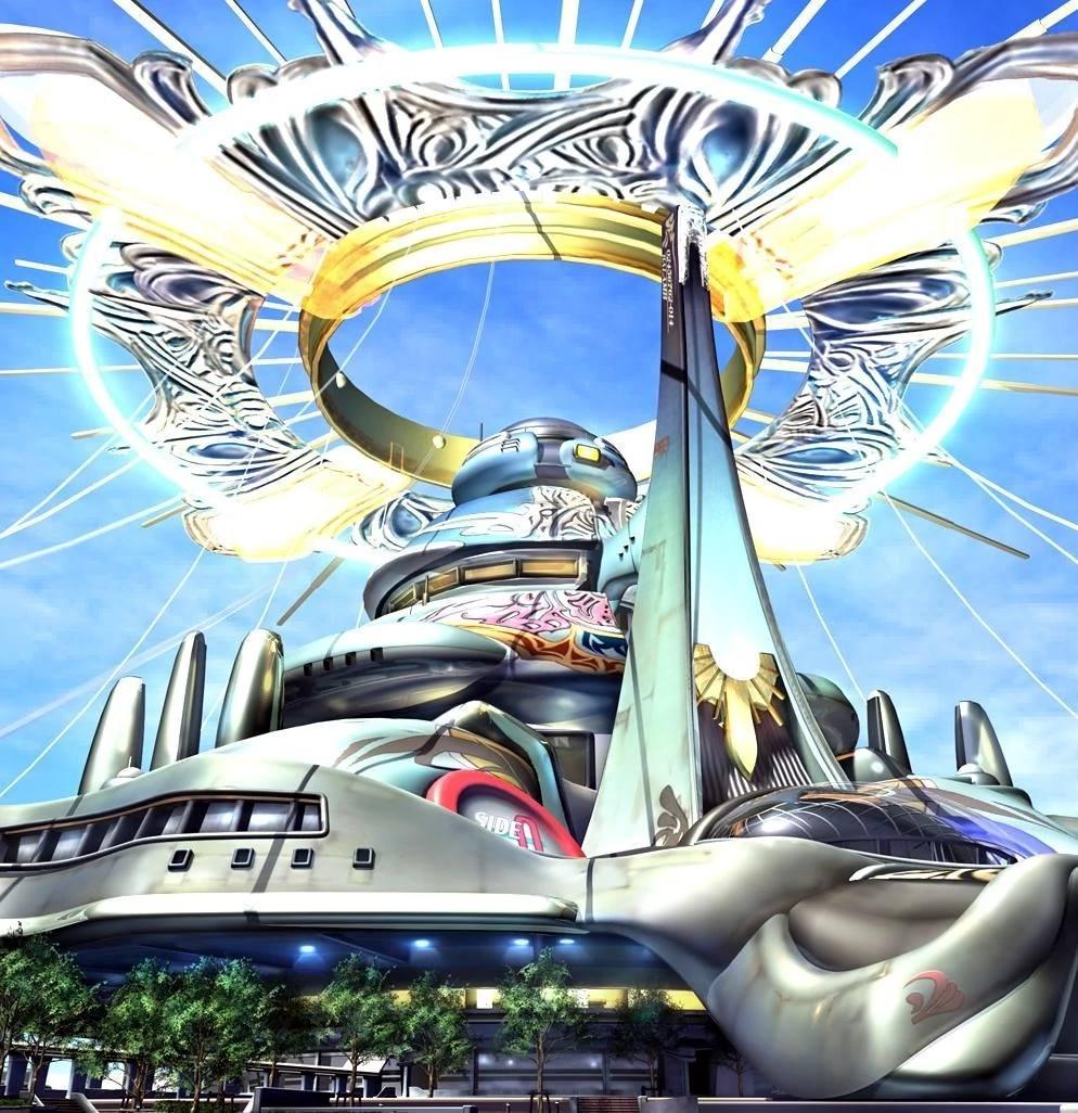 Concept art for Balamb Garden in Final Fantasy VIII (1999) Represents the recurring theme of ecofuturism in Y2K along with a...