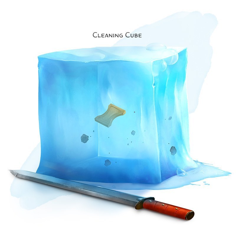 This Tiny, sentient piece of an enchanted gelatinous cube is harmlessly soapy, instead of acidic, and enjoys cleaning the surfaces it travels across. When found, theย "cleaning cube" is a dehydrated, 2-inch cube. While dehydrated, the cube is inanimate and its weight is negligible. You can place the dehydrated cube in 1 or more gallons of water as an action, causing it to animate and grow in size to become a 1-foot cube that weighs 6 pounds. The rehydrated cube moves slowly while animated in this way, methodically cleaning objects and surfaces it comes into contact with. The cube remains hydrated for up to 8 hours, but can be squeezed as an action (as if it were a sponge) to dehydrate it again early.