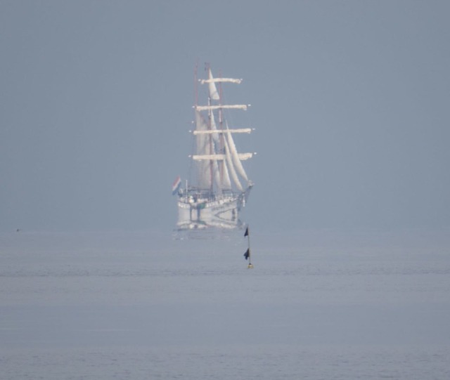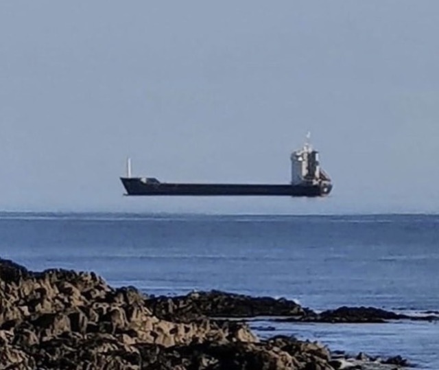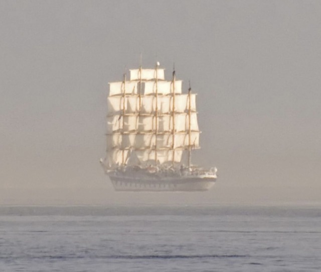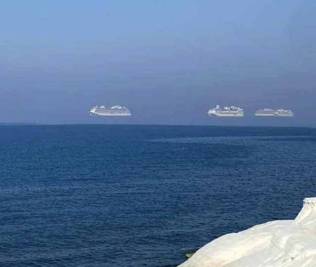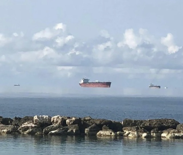 a superior mirage caused by warm air resting on patches of colder air in an atmospheric duct that acts like a refracting lens. Objects on the horizon could appear to be mirrored, distorted, or float. This form of mirage could be the reason for the Flying Dutchman Legend.