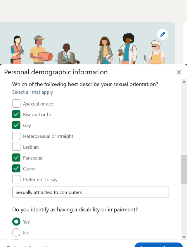 linkedin allows you to add a customsexuality for your confidential demographic information